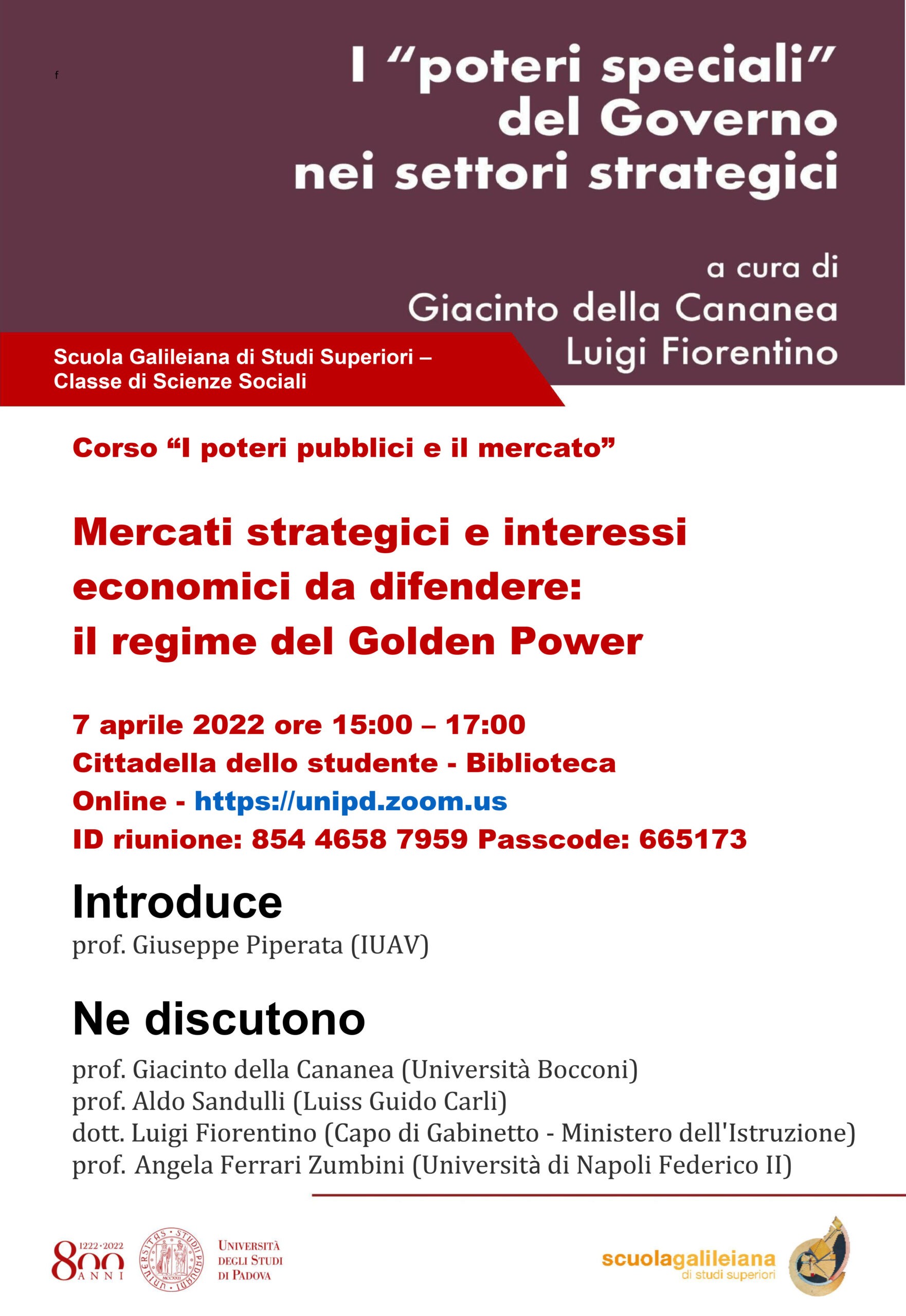 Corso “I poteri pubblici e il mercato” il 7 aprile ore 15:00. Mercati strategici e interessi economici da difendere: il regime del Golden Power